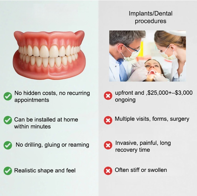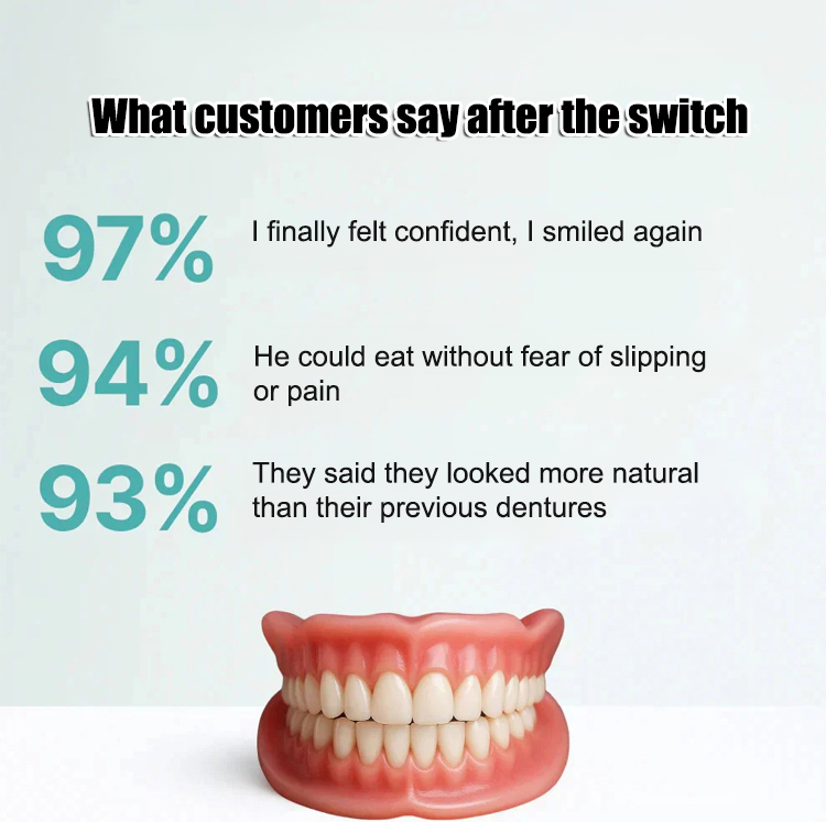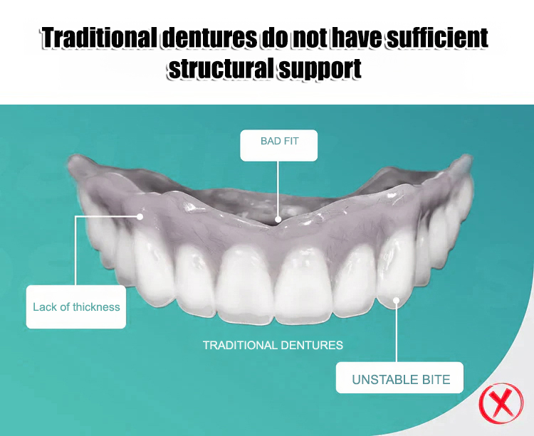 🔒No adhesive required, it adheres firmly to the gums, does not fall off easily when speaking or chewing, and is easy to use for people of all ages.